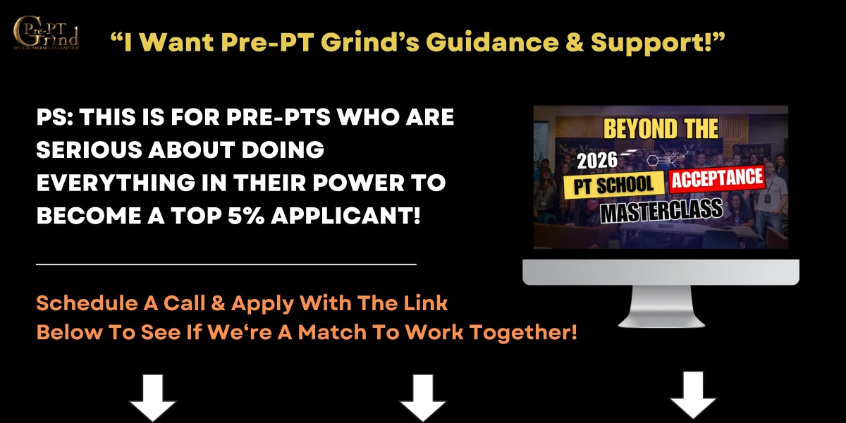 Use the calendar below to book a call with our team to see if you are a match to work with us to help you get into Physical Therapy school without wasting time or money!